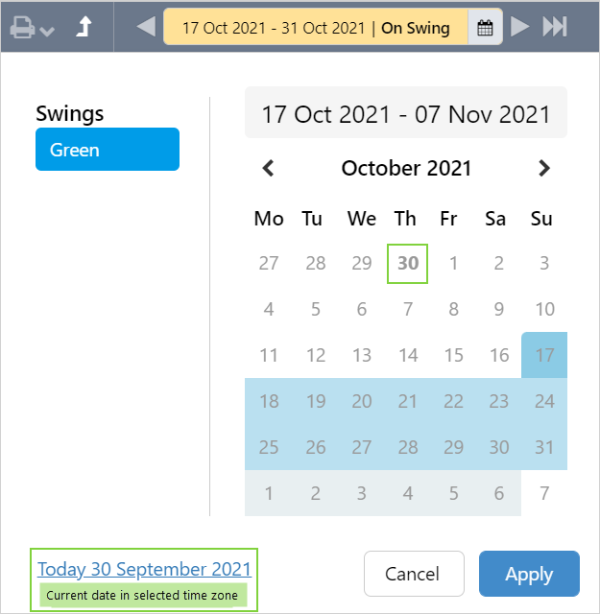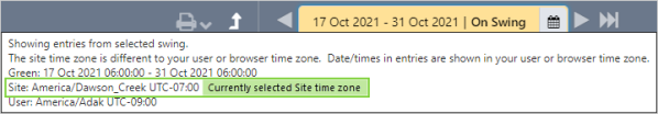 The shift and swing patterns at a site will reflect the selected Site time zone.