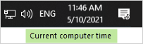 If the selected time zone is different to your local time, it is highlighted in yellow.