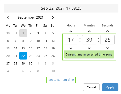 3. Date and Time Picker - Set to current time The current time is the time in the selected time zone.