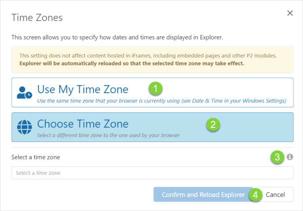 | 2. | Choose Time Zone | Select to use a different time zone, to the currently selected time zone. |