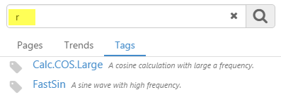 Tags with names or descriptions matching the search criteria appear in a list in the search tab.