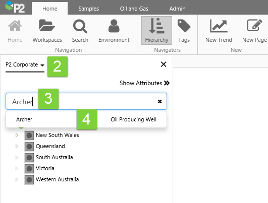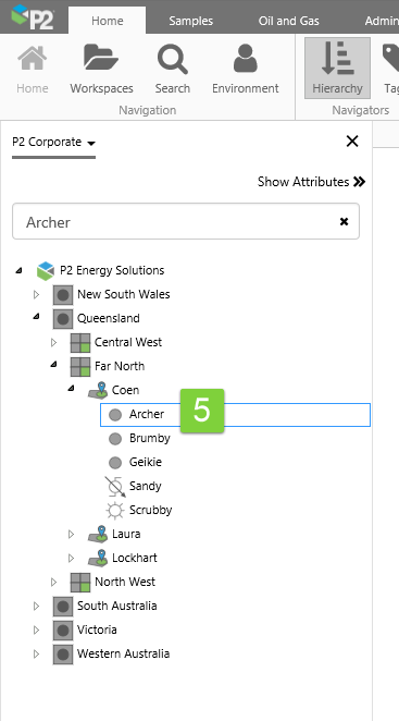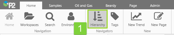 1. Click the Hierarchy button in the Explorer ribbon tab. The following tabs all contain the navigator buttons, Hierarchy and Tags: