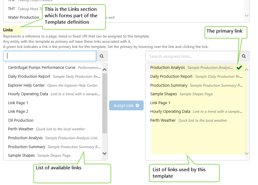 When a link has been created (with a name, possibly a link group, and a URL to a page, trend, or external site) it can be assigned to one or more templates. This is also done in Server Management.