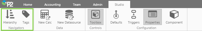 The Hierarchy and Tags Navigators are also located on the Studio ribbon tab.