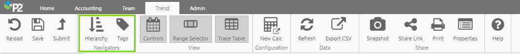 The Hierarchy and Tags Navigators are also located on the Trend ribbon tab.
