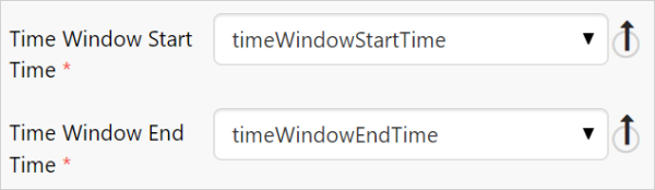 New start (timeWindowStartTime) and end (timeWindowEndTime) time window variables: