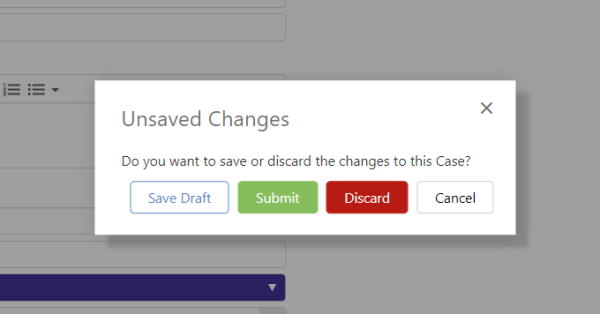 The option of creating a Draft entry has been added to all Case Management forms. This means cases that may be incomplete or not ready to be submitted, can be saved and completed later.