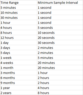 For some time, the Explorer Trend has included logic that limits the Sample Interval, dependant on the time period that is being fetched.