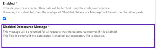 When the datasource is disabled, the message defined in Disabled Datasource Message will be displayed to end users either through the data errors on an Explorer page, or the data errors in the Trace Table of an Explorer Trend.