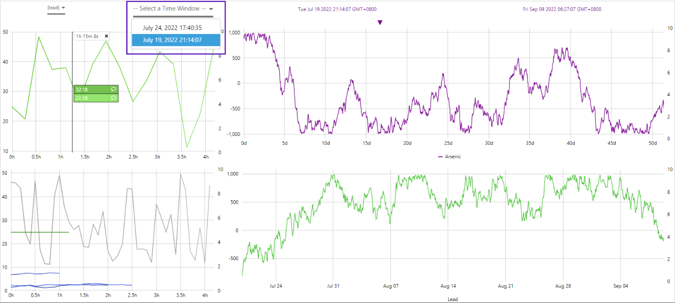 With these time variables we can drive other components on the page, like on the charts shown below.