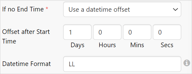 A Time Window can be ongoing or have no set end time. Due to this an alternative method of determining the end time can be configured. The options are to define an offset to apply to the start time of the time window, or to use an alternative variable to set the end time in cases where the Time Window does not have an end time.