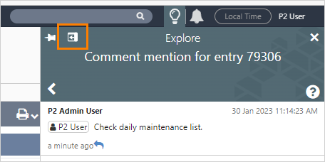 After receiving a notification that you were mentioned in a comment, you can click on the notification to view the comment in the right hand Explore Panel.