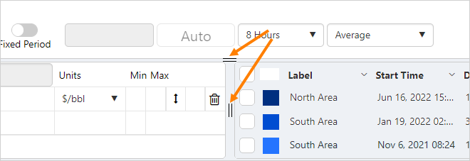 To make it easier to recognise that the trace and time window tables can be resized both horizontally and vertically, grip handles have been added to the Trend tables.