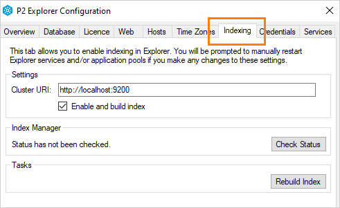Admin users can now enable or disable, rebuild, and check the status of the build, from the Indexing tab in the configuration. Previously this could only be done by directly checking the database.
