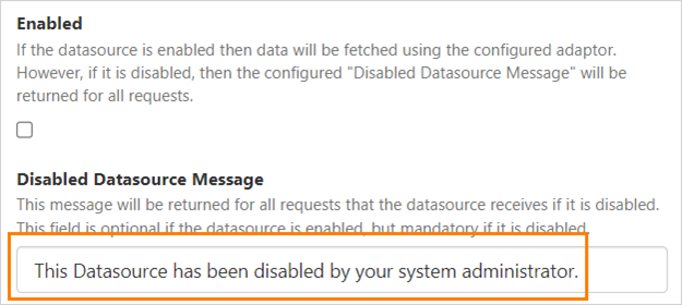 A default Disabled Datasource Message has been added and will be displayed when a user attempts to use a datasource that is not enabled.