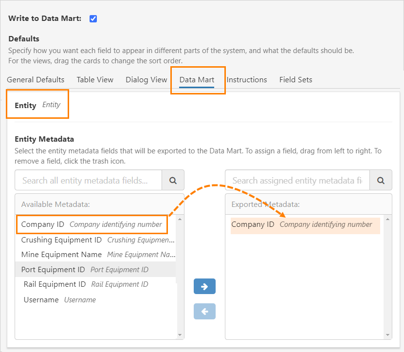 Inside of the Data Mart, this will result in is an extra column being added. If configured as per the screenshot above, a Company ID column will be added and populated with the appropriate value that matches the values configured for that Entity.
