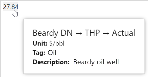The information in the attribute value tool tip, which is displayed when hovering over a data label, has been updated to include the tag name. This makes it easy to immediately see which Tag the data belongs to.