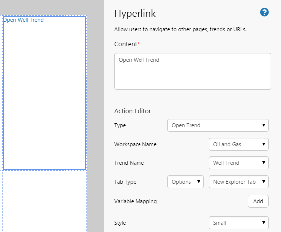 P2 Explorer adds a new Hyperlink component, which can be used to open an Explorer page or trend, or to open an external URL.