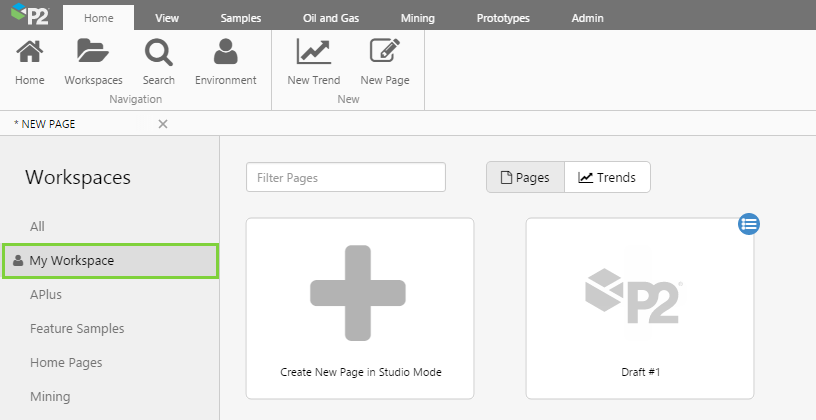 Release 4.3.2 of P2 Explorer introduces private workspaces and a publishing workflow. When first saving a page, pages are now saved to My Workspace, which is a private workspace for the logged in user.