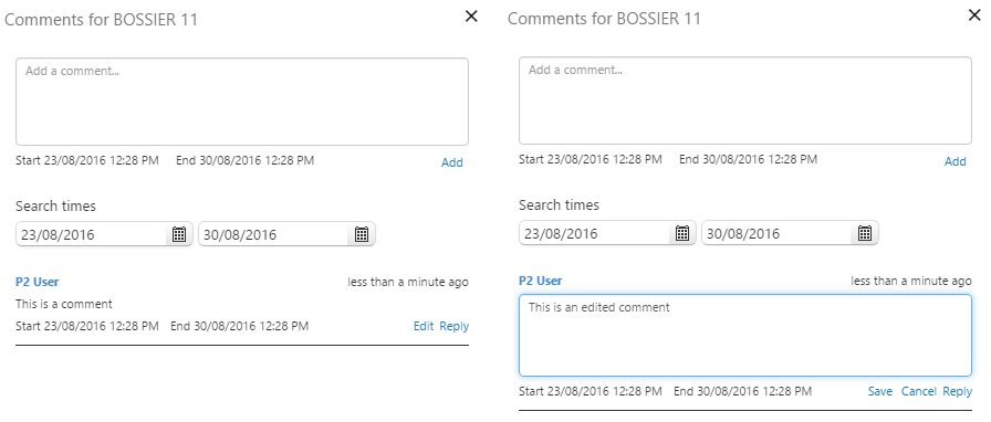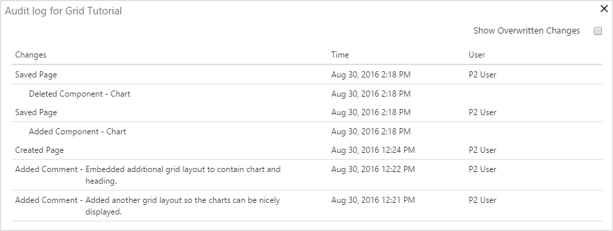 P2 Explorer page designers can now add comments to an audit log. Comments are added in Explorer Studio via the Page Properties, when designing a page.