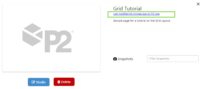Once the comments have been added, users with the Explorer Administrator role can view the audit log by clicking the Last Modified link of the page details from the Workspaces view.