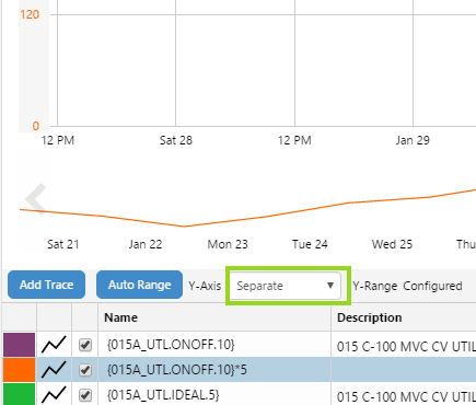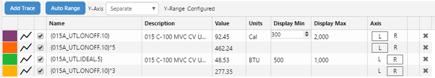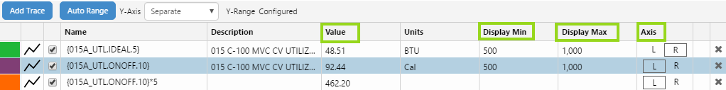 The trend has had updates to the way in which its Y-Axes are displayed. There are also several updates to the Trace Table in this release. These features allow you to control how your trace lines are plotted against the vertical (Y) axes.