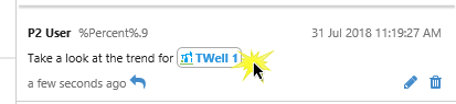When you add an entity to a comment by using the # symbol, the entity name appears, prefixed by its primary template icon, in a pill in the comment. If there is no icon, then the standard entity icon is shown. The entity name is in blue, indicating that it is a hyperlink.