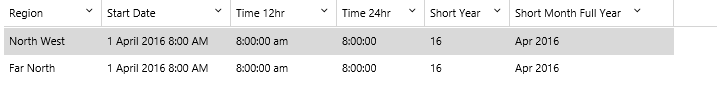 The example below shows some of the formatting applied to the Start Date column of this data table’s data: