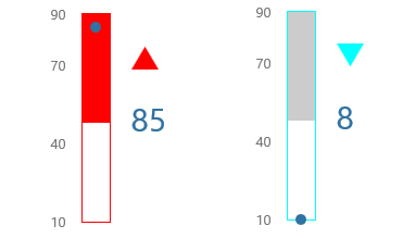 Several of the meter components can be configured to show limits (such as Low Low, Low, Outside Target, High, etc.).