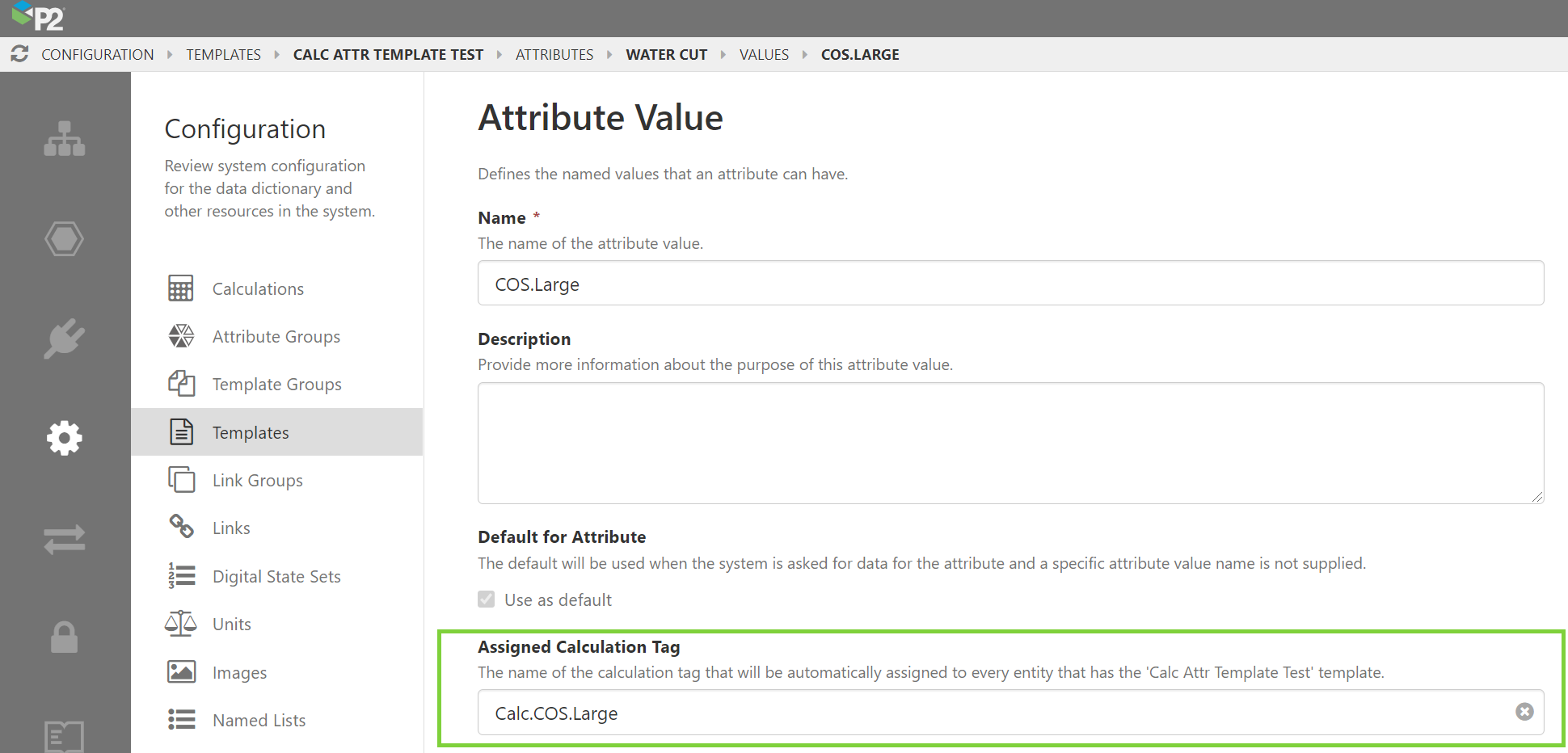In P2 Server Management, it is now possible to assign a calculation tag directly to an attribute value. This drastically reduces the amount of time it takes to configure a large number of entities.