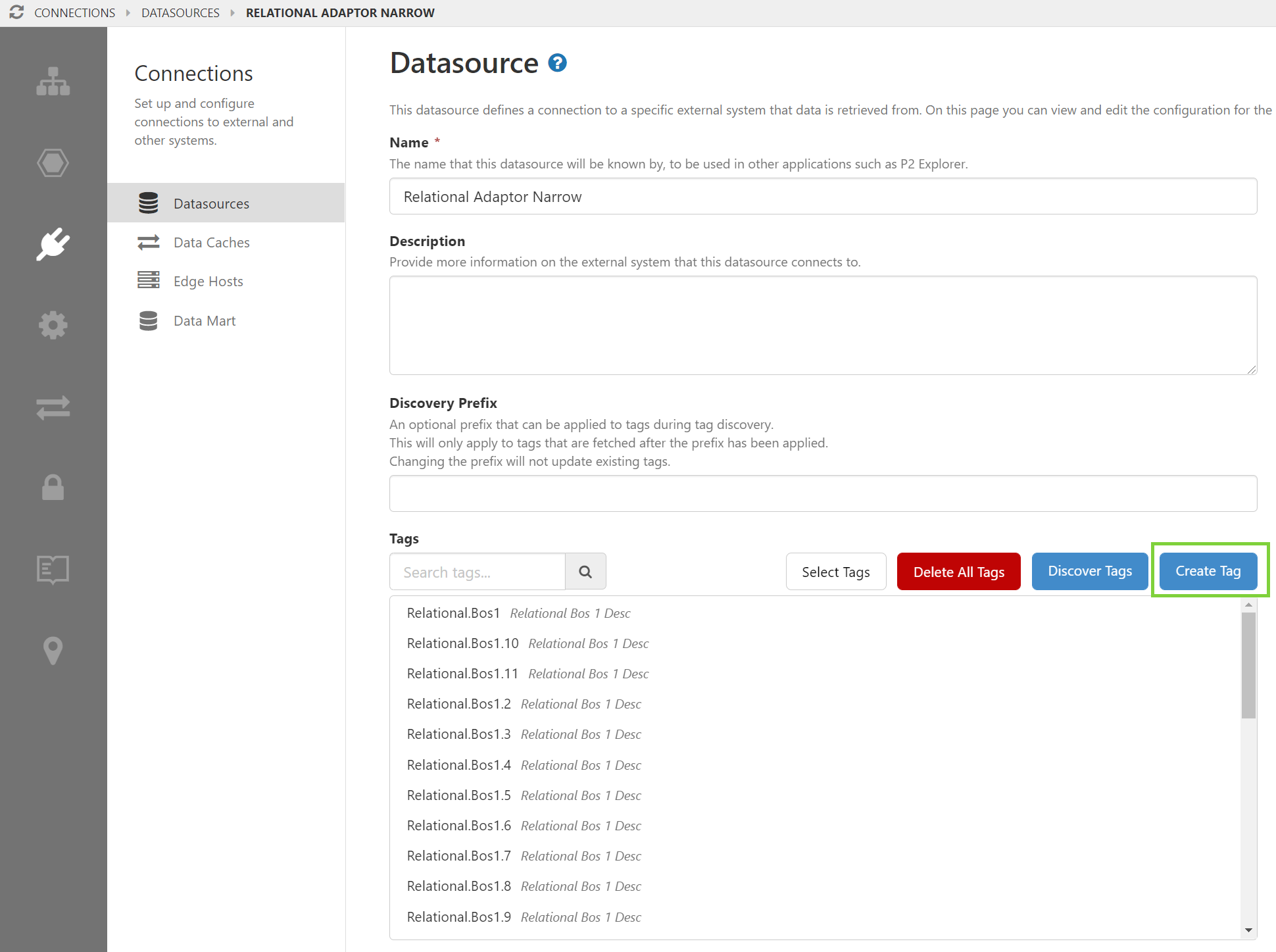 In P2 Server Management, it is now possible to create tags for a Relational Datasource. There are two conditions: