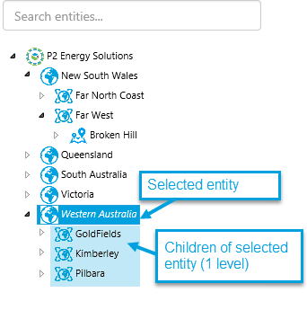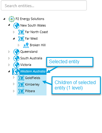 - As a page user, you can search and navigate through a hierarchy to open an Entity's Primary link.
