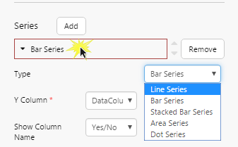 Step 2: Click a series to open it (for example, click Bar Series). Select a different series type from the Type drop-down list.