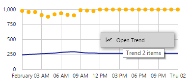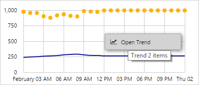 To trend several series (for tags, attribute values, or calculations) from a chart or an embedded trend, right-click the chart and select Open Trend from the menu.