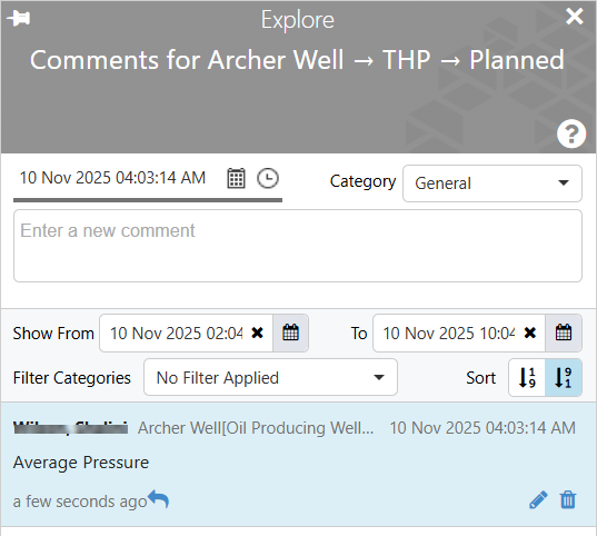The Comments panel opens, and you can change the dates in this, to search for comments. Any comments within that period will appear in the Comments Panel.