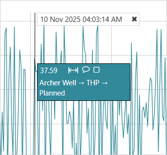 If a comment exists within the trace period, for one of the trace items, this is marked by a comment marker which you can click to view the comment. The comment marker matches the trace colour.