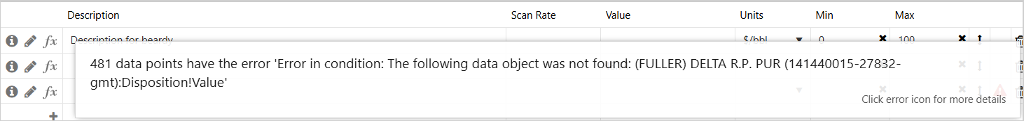 Hover over the error icon to view the error message.