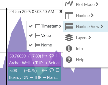 Use the Hairline view option in trend toolbar to configure what appears in the trend hairline pill.