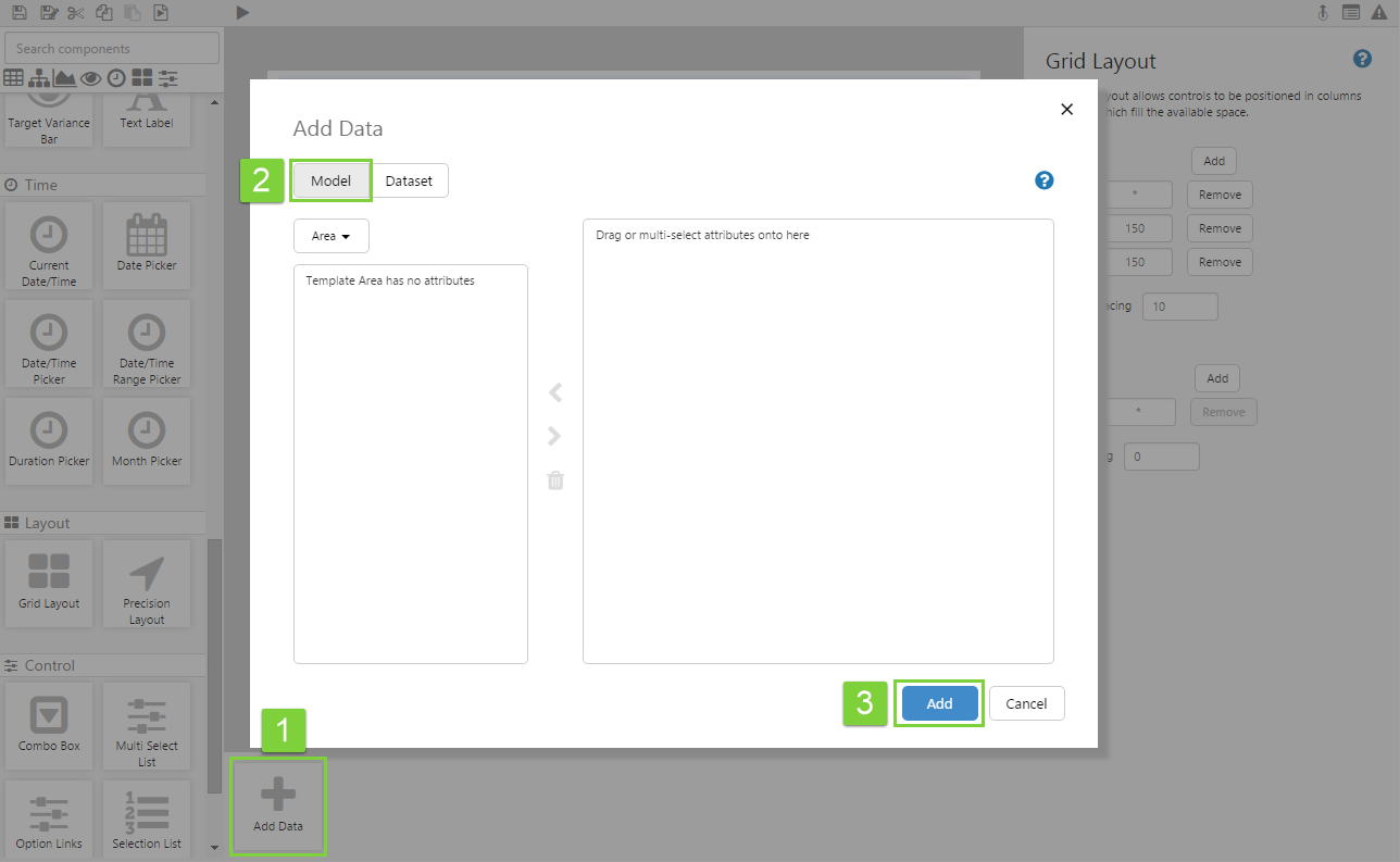 Templates and Attributes are specified slightly differently. First you need to select the template, then select the attribute, and then click Add. Repeat this to add multiple attributes. Let's add the first attribute.