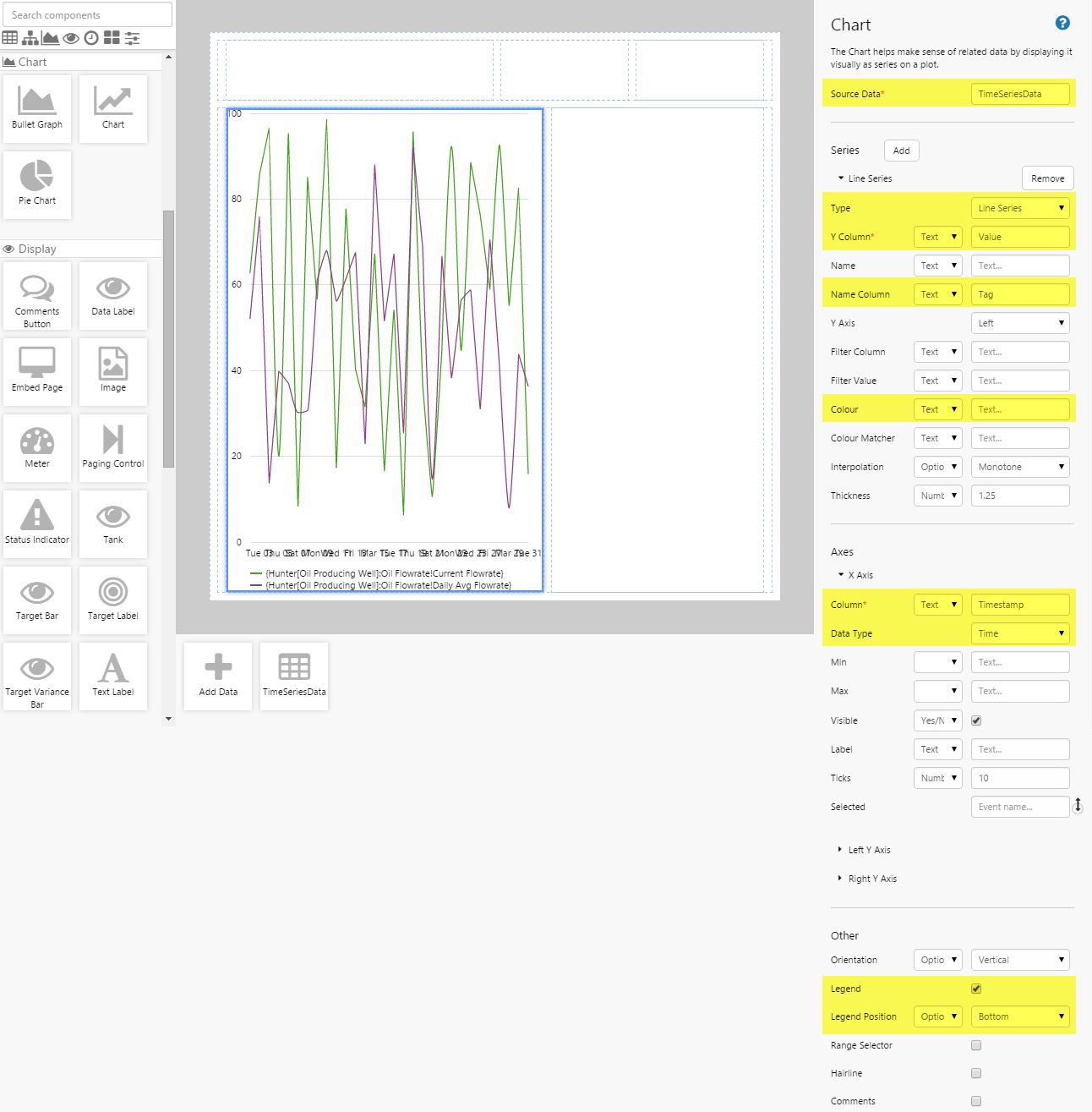 In the first step-by-step we added some Time Series data and configured some event defaults. Let’s finish off the page by adding some components. First we’ll add a chart so we can see the default data in action, and then we'll add some controls so the user can manipulate the data.