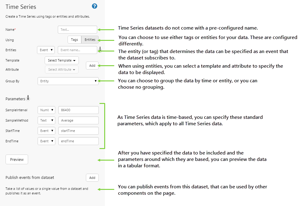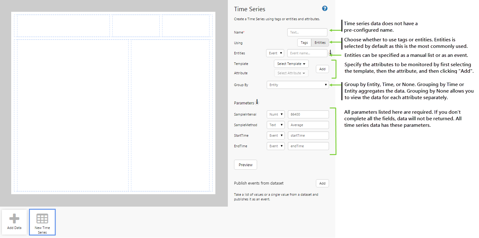 | Using: | Time Series data can be based on either tags or entities. |