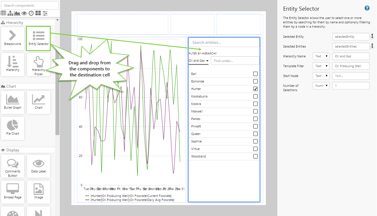 - Drag and drop the Entity Selector control onto the canvas.