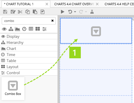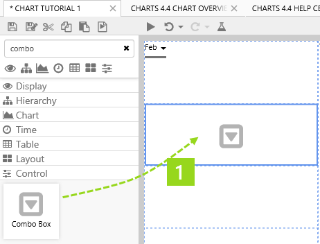 In this tutorial, we will add a Combo Box component to control the displayMth parameter for the chart's dataset query, AccountingProdAmtsDisplayMth.