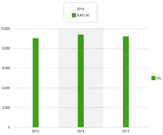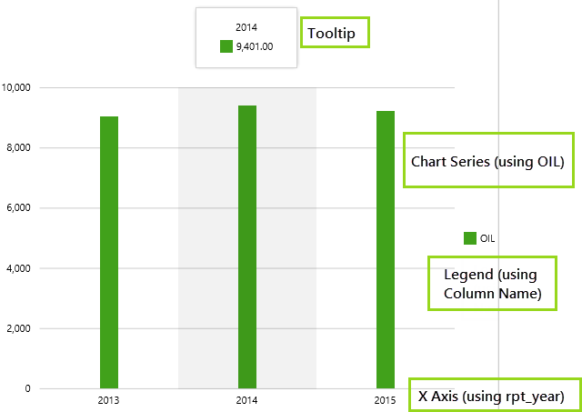 The chart will have a bar series showing annual OIL amounts for February, along an X Axis of reporting years (rpt_year).