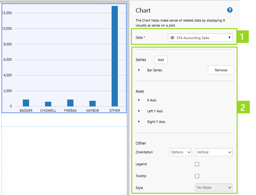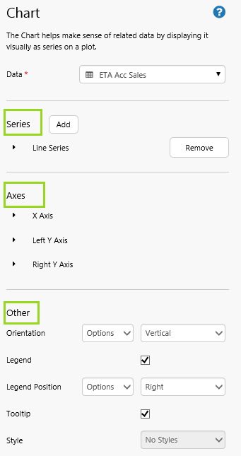 • Other: This includes optional configurations for the chart's general appearance, such as orientation