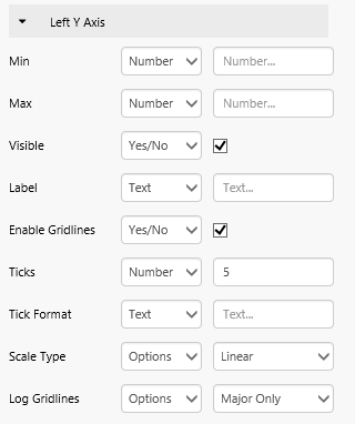• Axes: The chart has an X Axis, as well as a Y Axis (left and/or right).