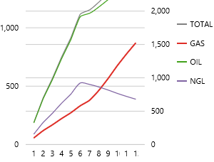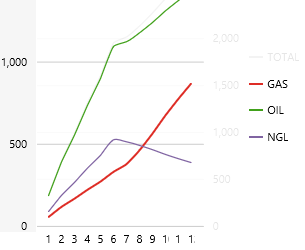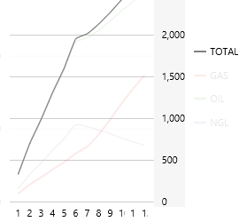 We're going to choose a dataset that returns OIL, GAS and NGL data for the selected month (Feb). In the query, product figures are summed and grouped into years (rpt_year).