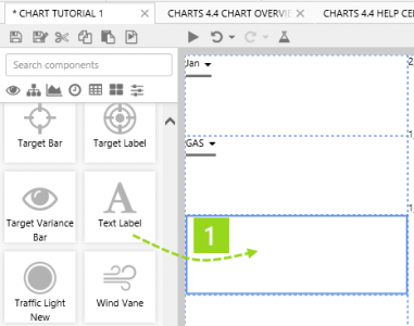 Drag and drop a Chart component onto a grid cell. The Chart is in the Chart chartsicon_sm group.