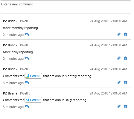 Comments are stored in IFS OI Server and can be viewed in Explorer trends, and in Explorer pages that have been configured for comments. For example, a comment that is added for entity ABC on Explorer Page 1 can be viewed and replied to on Explorer Page 2 if the page has been configured for comments for that entity, and from Trend 1 if that trend uses the same entity - provided the time ranges overlap.