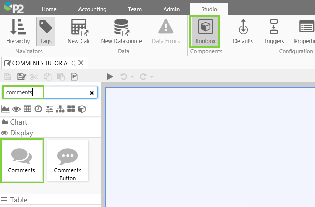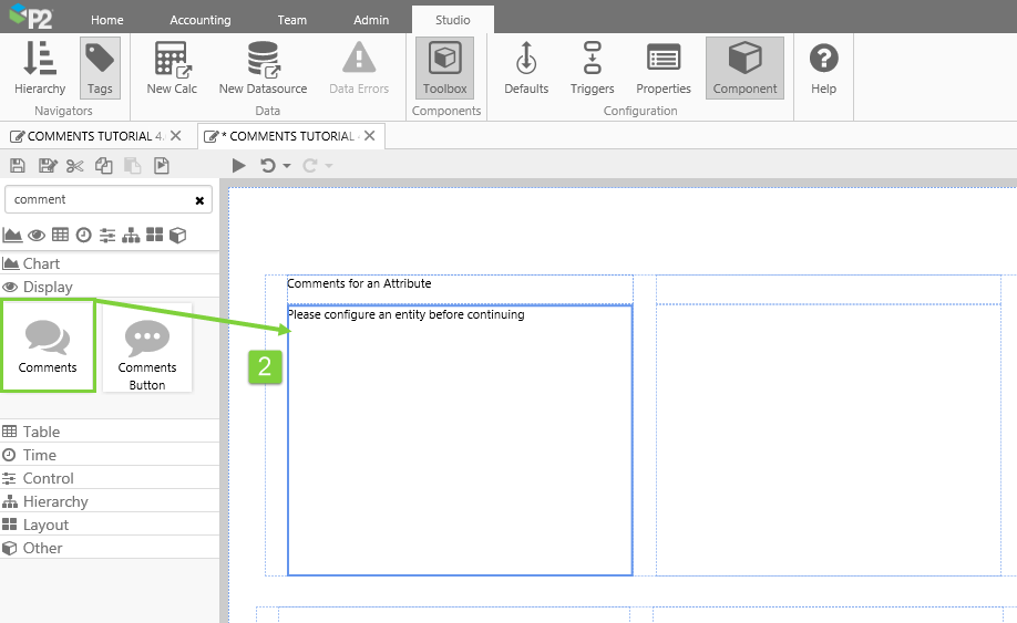 2. Drag and drop a Comments component into the cell below the Text Label.